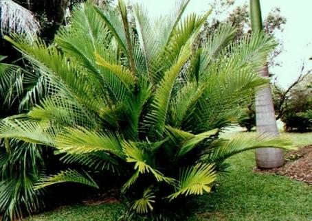 | Arenga Palm Arenga engleri/Arenga tremula The attractive, out-of-the-ordinary arenga palm is one of the most unique and under-used palm trees in Florida. Arenga palm growing next to house Arengas are multi-trunk, clustering palms with an unusual growth habit - short and wide-spreading - that makes them a great alternative to a shrub hedge. You can use an arenga - sometimes called "Dwarf Sugar Palm" - almost as you would a large, wide-spreading shrub yet one with a decidedly tropical look.Long, large-leafed fronds with silvery undersides contrast well with the textures and colors of other plantings. Or...as an understory plant in a garden shaded by trees or taller palms, an arenga palm tends to spread less and makes an outstanding stand-alone specimen. Plant specs Young palm in sunny garden Dwarf sugar palms are slow-growing. They can reach an average height of about 8 feet tall and 8 feet wide (in shade) to 15 feet wide (in sunnier locations). These cold-tolerant palms thrive almost anywhere in South Florida - from Zone 9B and southward. Though full sun is fine - where it will grow slightly faster - the arenga keeps its best deep green color in partial to full shade. Plant care Amend the soil with organic peat moss or top soil when you plant. Arenga palms like a regular watering though they don't like "wet feet." Plant a bit on the high side if the area isn't well-drained. As it matures, an arenga forms aerial roots that push it above the soil surface, which helps provide good drainage for the health of the plant. Apply palm fertilizer at least 3 times a year, in spring, summer and fall...and if the palm is planted in full sun, fertilize more often (up to once a month in warmer weather). In a full sun location, this palm's fronds tend to turn lime-green or yellow, so the extra fertilization helps prevent this discoloration. These palms aren't considered self-cleaning but you'll only need to trim off an old frond occasionally...or side shoots if you want to keep it less wide. Large palm by house Plant spacing Even though its fronds can extend an average of 6 feet or more, this is one palm you can plant as close as 3 feet from the house. Cut off any fronds along the back that touch the wall. Very young palm For a privacy screen or hedge, space the plants 3 to 6 feet apart depending on the density you want. The fronds will merge together in tight-knit plantings. As a stand-alone specimen, it will spread its wings, so to speak, so allow enough room for you to get by it comfortably as it matures. These make excellent container palms because of their slow growth rate. Landscape uses for arenga palm privacy screen along a patio, pool or anywhere you need one hedge plant single specimen accent for corners provide interest along tall blank walls covering a fence container palm |