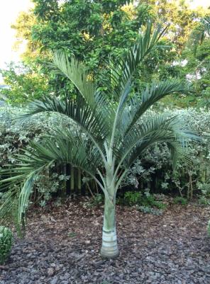 | Buccaneer Palm Pseudophoenix sargentii A native of the Florida Keys and the Caribbean, the buccaneer palm is notable for extremes...drought-tolerance, salt-tolerance and a growth rate slow as molasses. Buccaneer palm planted close to house Rare and unusual, no two buccaneers look alike. They can range in color from green or light green to blue green or completely silver. The swollen trunks on mature specimens vary in shape - and the subspecies saonae develops a heavier trunk than sargentii. This striking Florida native palm is not well known and used infrequently in home landscapes, but it deserves a place in warmer areas of South Florida as a focal point in tropical or coastal gardens. Since it's very slow-growing and sensitive to cold, the buccaneer is a perfect small palm to grow close to the house. The fronds' stems spread out in a flat, fan-shaped pattern, much like a tiny blue-green traveler's palm, especially while the palm is young. Mature palm Plant specs One of the most slow-growing South Florida palm trees, the buccaneer palm can eventually grow to 10 to 15 feet in Zone 10B, the recommended coolest zone for this palm. In the few existing natural stands left in Florida, some of these palms may reach 25 feet, but in a home landscape, expect only about 10 or so feet in height. Though the buccaneer does best in warmer and coastal areas, it can be grown in Zone 10A (with winter protection) in a sheltered spot in the landscape, or in a container that can be moved inside or kept in a more protected area like a pool cage. It's pest-free and very drought- and salt-tolerant, making it an ideal accent palm for warm, seaside locations. This palm can take full sun to partial shade but actually prefers some shade, especially when young. The fronds can reach anywhere from 4 to 10 feet in length; the more shade, the longer the fronds will grow. |