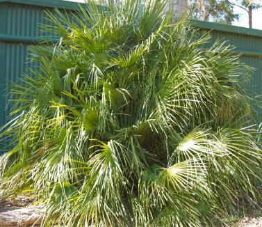 | European Fan Palm Chamaerops humilis The diminutive European fan palm is silver-green, slow-growing and one of the most easy-care, cold hardy palms for South Florida. Young European fan palm in a garden bed The "Mediterranean Fan Palm," as it's often called, is a multi-trunk palm yet it stays very compact and won't outgrow a small area. It makes a stylish accent for any home, especially those with a Spanish or Mediterranean flair. The color of this palm is usually green with a silvery cast, though no two European fans are exactly alike in color or shape. Because of the sharp teeth or "spines" lining each stem, the European fan is best placed a safe distance from heavy foot traffic. Two mature palms Plant specs European fan palms are very slow-growing to a maximum height of about 8 to 10 feet. They can thrive in full sun to full shade, with fronds growing a bit larger in shadier areas. Cold hardy to Zone 8, this palm needs no protection whatsoever from whatever Mother Nature doles out in winter. Another plus - high drought tolerance once the palm is established. It's also a moderately salt-tolerant plant so it can handle coastal locations subject to salt spray. Plant care Extremely low-maintenance is this palm's trademark, with no soil amendments needed when planting and very little pruning necessary to remove dead fronds. Avoid placing this palm in a moist area...it likes to dry out between waterings, and heavy rainfall should drain quickly from the European fan's location in the landscape. Frond close-up Fertilize once a season in spring, summer and fall with palm fertilizer. Plant spacing In 25-gallon pot at nursery Plant 3 to 4 feet away from the house, and about the same distance from one another if you're planting more than one. These are wonderful container palms because they grow so slowly and like to go dry between waterings. Unless you're really young or very patient, you may want to purchase your palm in a larger-size pot for an important role in your landscape, since its growth rate is very slow. Landscape uses for the European fan palm (keeping it a distance from activity due to spines on the stems) pool cage planter entryway plant small focal point palm for a garden bed with other drought-tolerant plants in pairs flanking the entrance to a driveway corner accent plant container plant for patio, pool or courtyard |