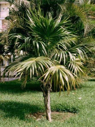 | Florida Thatch Palm Thrinax radiata A Florida native, the pretty thatch palm likes the coastal and warmer areas of South Florida. These palms are common along coastal highways in the southernmost areas of South Florida, but they can also make great landscape or container specimens. Solitary by nature, this palm is also grown in multiple trunk forms. It grows slowly and starts out life as more of a low-to-the-ground, palmetto-type plant - perfect for privacy screening. It eventually forms a thin trunk, which makes this palm a good fit for a tight space. The fall fruit produced on a mature specimen is a good food source for birds. Florida thatch palm in a pot at a nursery Plant specs This native palm is a very slow grower, with an ultimate height of about 15 to 20 feet, with weepy fan leaves and a narrow gray trunk. Sun or shade is fine for the thatch, and the more shade, the more slowly it grows. Tender and tropical, this palm is best in Zone 10B and along the southwest coast of Florida up to Naples. Because it's cold-sensitive in inland Zone 10 locations, minimize cold damage by placing it in an area sheltered from winter winds. Like many Florida native palms, this one is drought-tolerant once established, as well as being very salt-tolerant...another plus for beach-side locations. Plant care These palms don't really require soil amendments, though the addition of top soil to the hole certainly won't hurt. Do not plant in wet areas or places where the soil is thick...sandy soil is this palm's natural habitat. Fertilize 3 times a year - once in spring, summer and autumn - with a palm fertilizer containing micronutrients. Because it isn't self-cleaning, you'll have to prune off dead fronds yourself, but usually just a few times during the year. For cold protection for a young palm, especially in inland areas of Zone 10, you can tie up the fronds and wrap the head with frostcloth or warm blankets. In a container in a pool cage Plant spacing This palm works very well in small areas, and usually won't outgrow a pool cage planter if the interior is 15 feet or more. Single trunk palms can be planted 5 to 10 feet apart, and multi-trunk specimens may be placed close together to form a screening effect when the palms are young. You can also use them in narrow areas such as between buildings, where the head of the palm will eventually grow above the top of the buildings. Slow growth rate makes this an excellent container plant. Landscape uses for thatch palm anchor plant for a small garden bed at the entry courtyard, pool or patio container plant in a pool cage planter - best when somewhat shaded to slow the growth rate even more as a privacy screen (when young) lining a long driveway or flanking the entrance to the drive under large canopy trees between buildings, such as in architectural alcoves between house and garage |