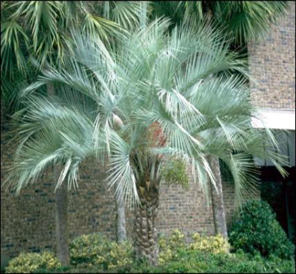 | Pindo Palm Butia capitata The silvery pindo palm gives home landscaping a classy, Old Florida look...and you can eat the fruit. Large pindo palm in a home landscape Striking in appearance, the pindo's feather-leaf, silver-colored fronds (some call it more of a blue-green) create an outstanding contrast to a typical yard's greenery. These are some of the hardiest palms in South Florida, laughing at cold, blazing sun, salt air and dry conditions. A native plant sometimes called "Jelly Palm," the pindo produces edible berries that can be made into jelly with a sweet banana/pineapple flavor. The look of the this palm is unique yet versatile. It can fit in small yards, especially pretty with a modest beach house, an old-fashioned Florida bungalow, or dressing up the yard of a ranch-style home. And pindo palms work for large woodland estates, horse ranches or waterfront homes as a bright spot in the landscape. Plant specs This Florida native is a slow grower to about 20 feet. When the palm is young, the fronds stay low to the ground, so allow a bit of room for them to spread out. As it matures, the pindo develops a thick trunk covered with woody leaf bases for many years, and the fronds curl downward to form a handsome top. As a stand-alone specimen in a yard These palms prefer a full sun location, though they'll tolerate partial shade. They're moderately salt-tolerant and very cold hardy, thriving anywhere in Florida in Zone 9 and southward. Plant care A pindo palm tree is about as easy care as it gets. No soil amendment is necessary but adding top soil to the hole when you plant is always appreciated. It doesn't like to be kept overly wet, and once the palm is established, minimal irrigation is fine. Fertilize once a season in spring, summer and autumn with a granular palm fertilizer. You can trim off browned fronds when the palm is young and short, but as it ages, you can let the old fronds just fall off on their own. Plant spacing Pindos are best grown as specimen palms, planted by themselves in the yard. But if you want to place one near the house or a fence, come out about 6 feet or more to give it room to develop. If planting in a row, space the palms about 10 feet apart so each individual pindo can shine. Unless you're growing a collector's palm garden, avoid planting in clusters since the pindo is much more showy as a stand-alone specimen or in a well-spaced row. This is not a happy palm in a container, and the pool cage planter just won't do it justice. The great outdoors of Florida is its perfect home. Landscape uses for pindo palm central focal point for a circular drive flanking the entrance to a stately drive lining a walkway as a single yard specimen anchor plant for a large garden bed accent for the corner of the house in front of a wall with a sizable bed in front of it |